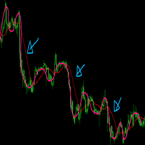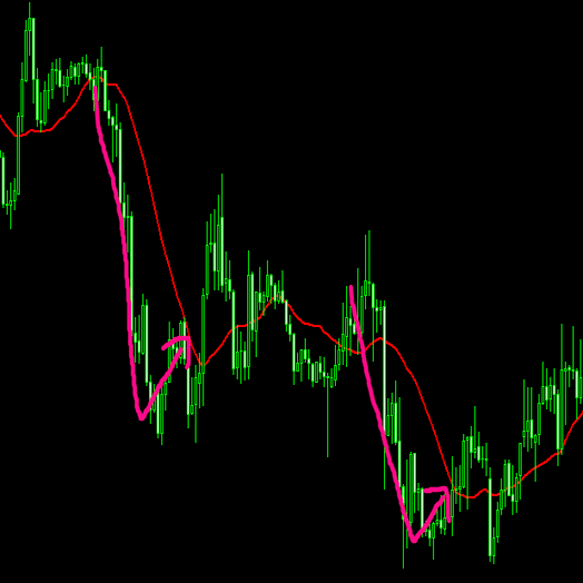 ですがずっと価格を下げる訳ではなくそのうちまたMAに収束していきMAを中心に上下しています。これを永遠に繰り返しているのです。