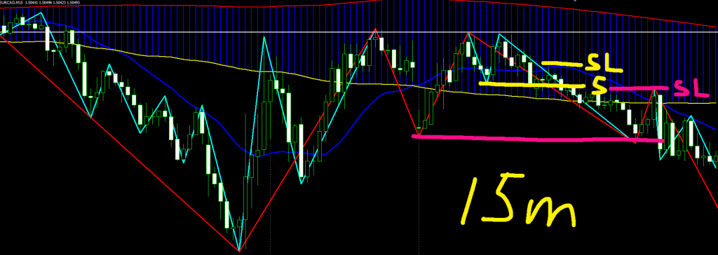 - 1時間足ダブルトップ右肩を15分足でダブルトップ形成