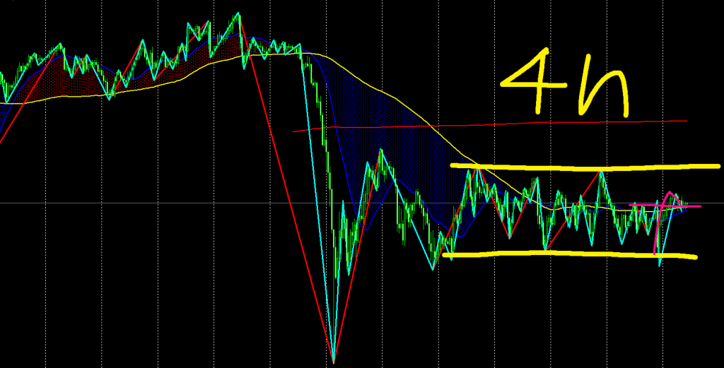 - 4時間足MAが下向きであり、日足MAとの収束局面にも見える