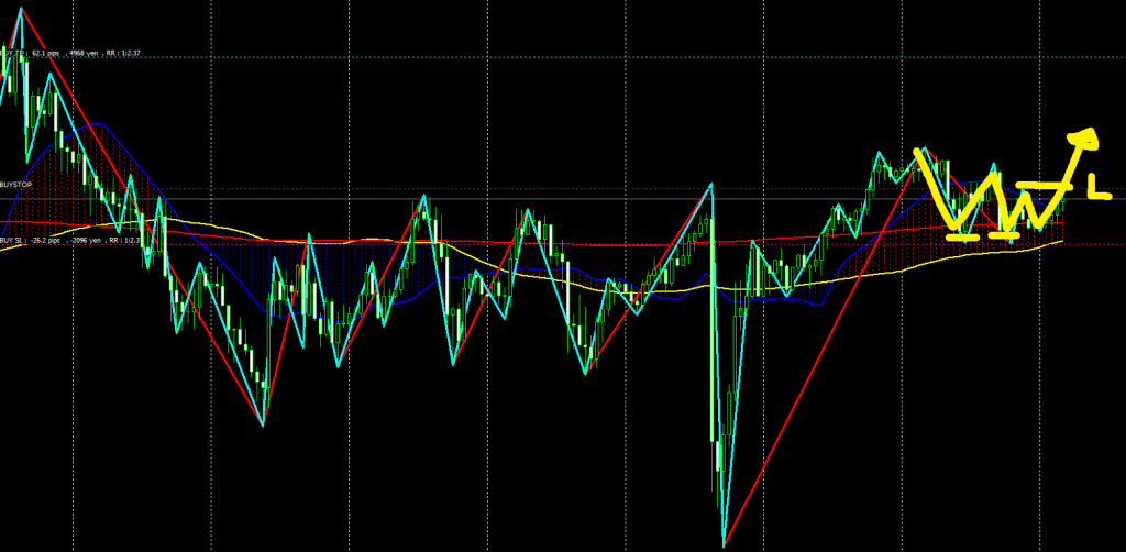- 高値越えで4時間足エリオット波動3波形成