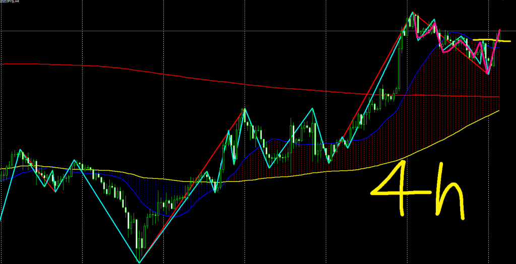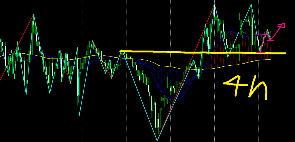 - 戻り高値を4時間足が超えてエリオット波動3波形成局面